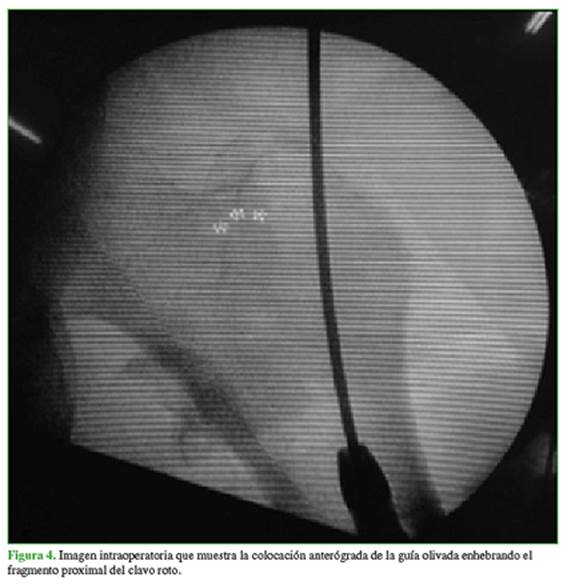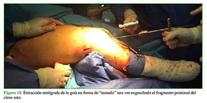 extracción de un clavo retrógrado roto, utilizando materiales e instrumental