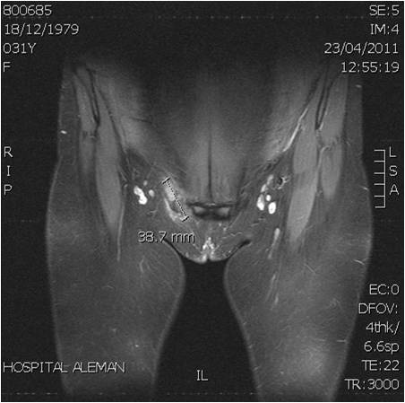 Pubalgia alta a causa de un endometrioma espontáneo de la pared abdominal. Reporte de un caso.