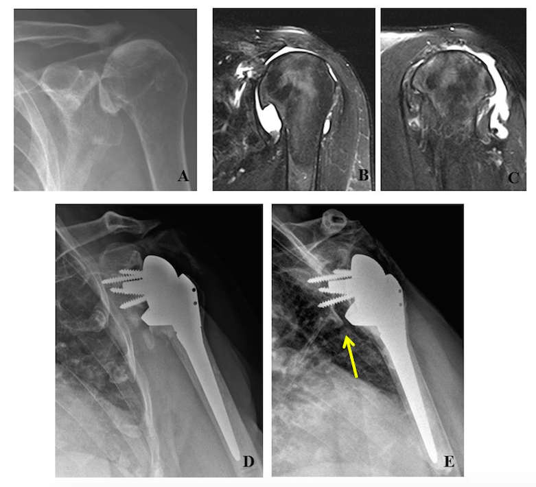 17. Sirveaux F, Favard L, Oudet D, Huquet D, Walch G, Mole D. Grammont inverted total shoulder arthroplasty in the treatment of glenohumeral osteoarthritis with massive rupture of the cuff. Results of a multicentre study of 80 shoulders. J Bone Joint Surg Br. 2004;86:388-95.