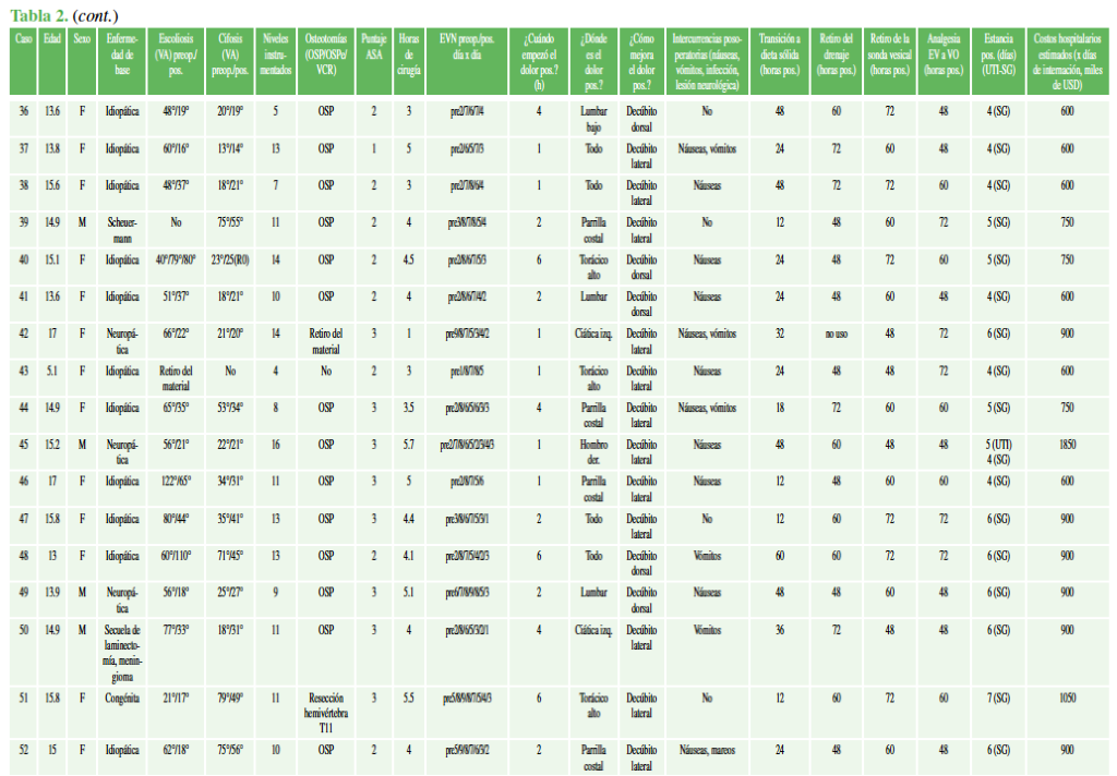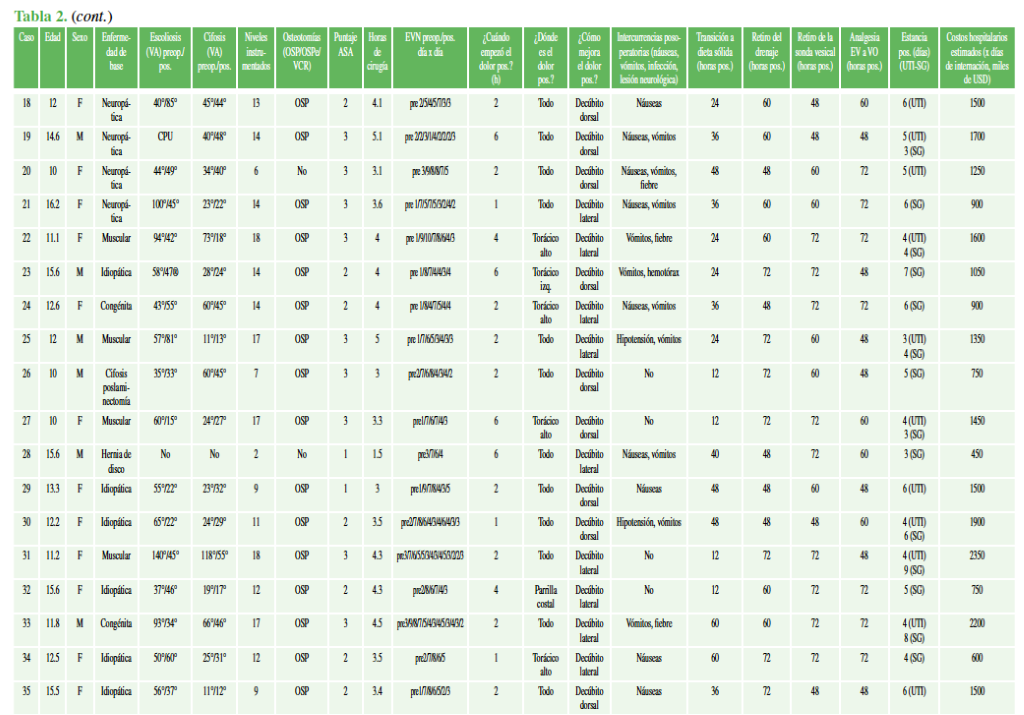 Manejo del dolor posoperatorio por cirugía de columna en la población pediátrica. Resultados preliminares.[Pain mangement following spinal surgeries in pediatric patients. Preliminary results]